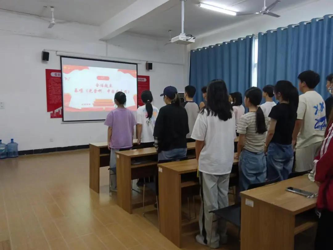 活动伊始,随着主持人的宣布声,庄重而肃穆的气氛瞬间笼罩了整个教室。全体同学起立,齐声高唱《光荣啊,中国共青团》,以此来表达对革命先烈们的崇高敬意。