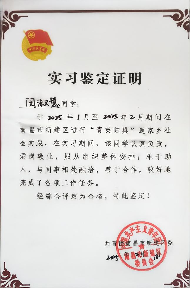 闵淑慧,2023级物联网本科1班的学生,寒假期间,她没有选择安逸的假期生活,而是投身于南昌市新建区长堎镇兴国路天御名邸299号社保中心的社会实践活动,用实际行动展现了当代青年的责任感与担当。