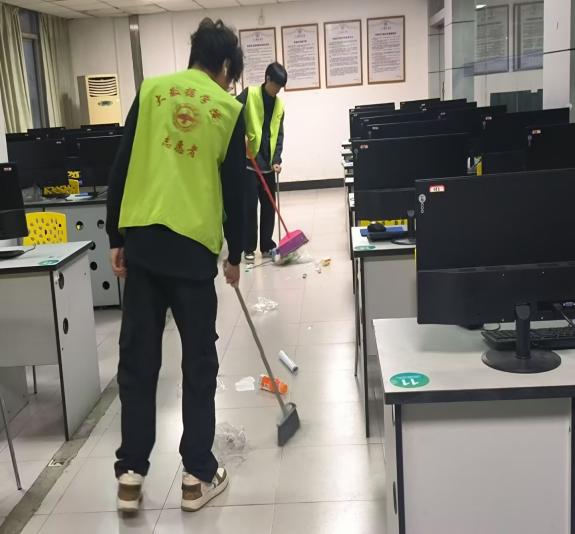 【bat365中文官方网站讯】为进一步优化实验室学习科研环境,强化学生劳动教育与志愿服务意识,11月7日下午5:30,版權所有 bat365(中国)股份有限公司-官方网站组织学生前往东二栋开展“数韵清风,净享洁净学习空间”实验室打扫志愿行动。本次活动由bat365中文官方网站学生党支部承办,全院28名学生志愿者积极参与。