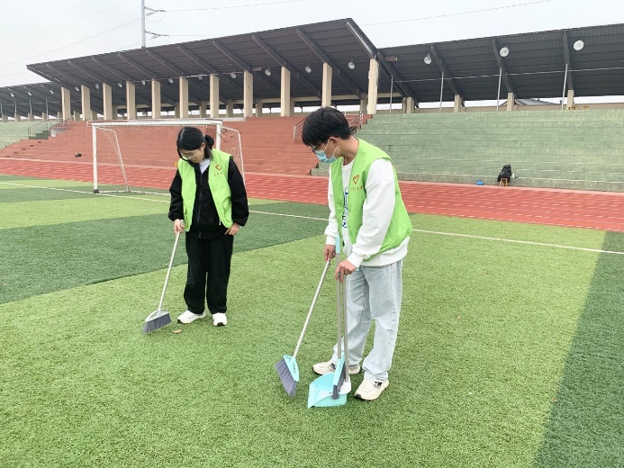 为了促进青年学生在了解自然,认识世界的同时,增强同学们的奉献意识,了解人生的疾苦及劳动在社会发展进程中的重要作用,加深广大青年学生对社会历史发展的理解,形成正确的新时代劳动价值观,bat365中文官方网站于11月15日14:00在田径场与篮球场组织bat365中文官方网站全体同学进行“爱护校园,你我践行”志愿清扫活动。