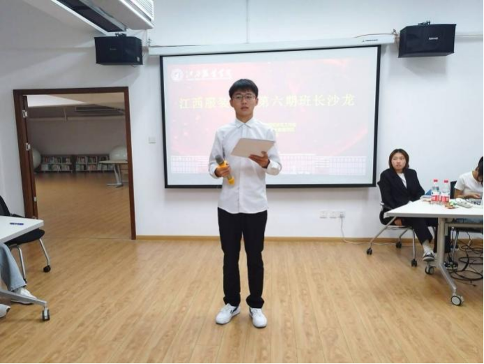 本次沙龙在班委联合会班级活动策划中心刘丰盈的致辞中正式开始,首先进行的是各位班长的自我介绍,他们以简短的语言描述的自己的身份以及未来班级的发展方向。