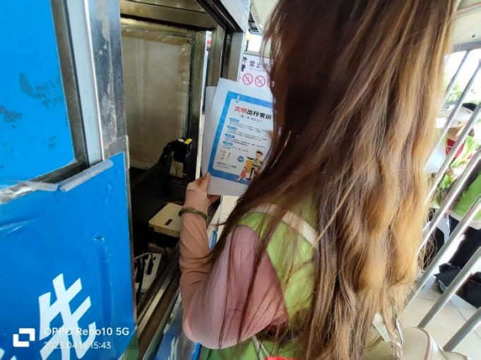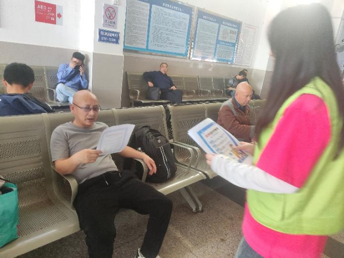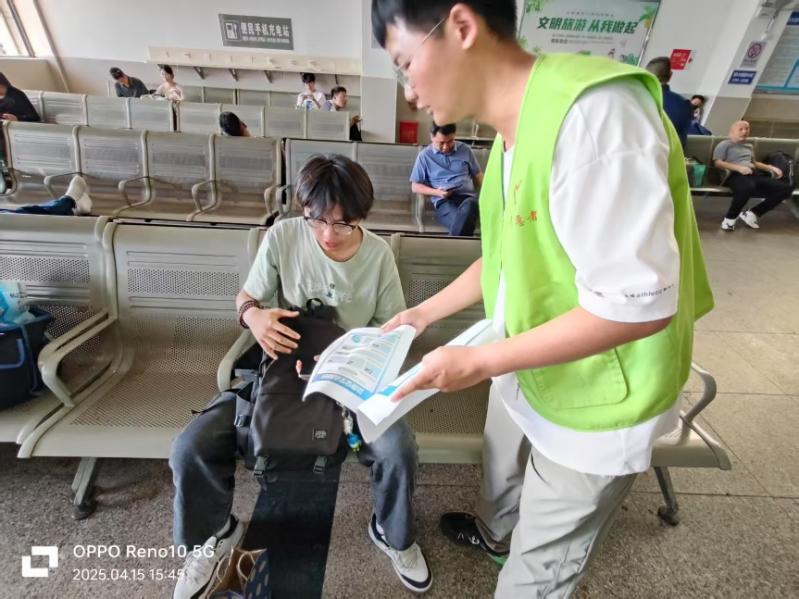 在火车站候车大厅显著位置,志愿者们设立了安全宣传服务点。活动现场布置了精心制作的安全知识展板,内容涵盖“文化安全”“社会安全”“交通出行安全”等实用内容。志愿者们身着统一服装,向过往旅客发放安全宣传海报,并耐心讲解出行注意事项。