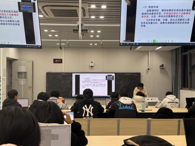 函数模块专项培训里,技术培训与发展部负责人周川骏则精选B站翁恺老师C语言函数经典案例解析视频,以“线上精讲+线下实操”模式,系统讲解函数声明定义、调用逻辑及模块化设计思路,助力社员突破代码复用与结构化瓶颈。全程培训结合竞赛真题演练,社员们在逐行调试代码、分组研讨漏洞中扎实提升实战能力。