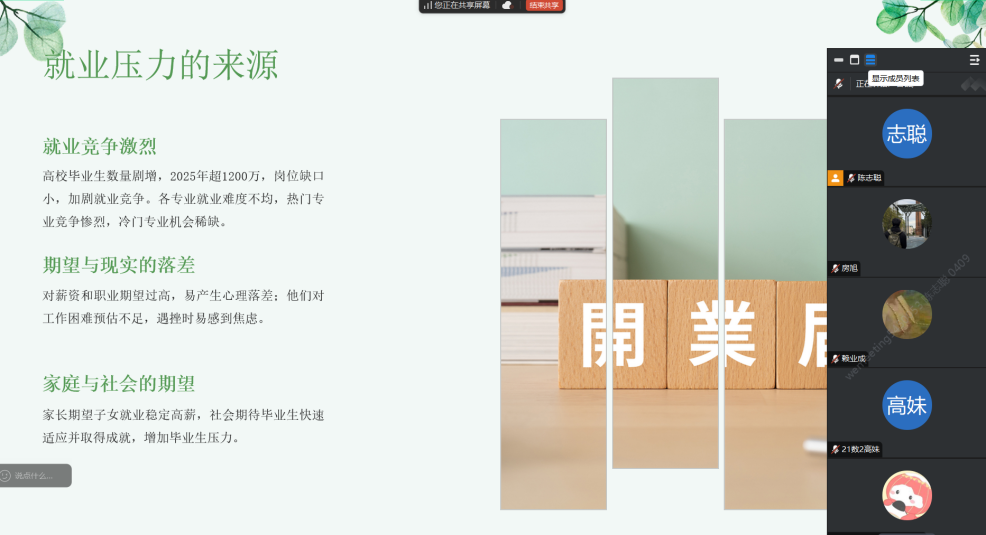 此次线上班会的成功举办,不仅为毕业生们提供了宝贵的心理调适指导,也增强了他们面对就业挑战的信心和勇气。bat365中文官方网站将继续关注毕业生的就业心理健康状况,为他们提供更多元化的支持和帮助,助力他们顺利实现就业梦想。