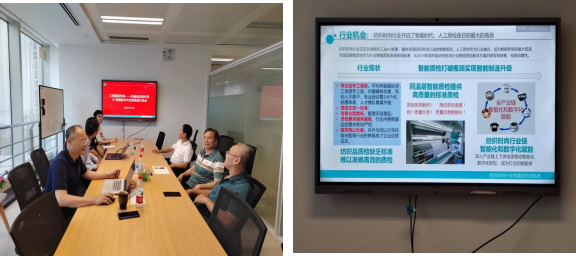 沥沥大雨阻挡不了学院对产学研深度融合探索的步伐。10日下午来到调研第一站——上海同温层信息科技公司,总经理周强、技术总监方明等企业领导接待bat365一行。双方重点洽谈了AI智能验布、色差检测、VR赋能教师信息技术能力等项目,确定了以“AI智能验布”研究内容申报省重大科技项目,以“色差检测”研究内容申报产学研项目或省自然科学基金项目,探索了VR技术赋能教师能力大赛。座谈结束后,周总带领我们参观并体验了该司研发的智能产品。