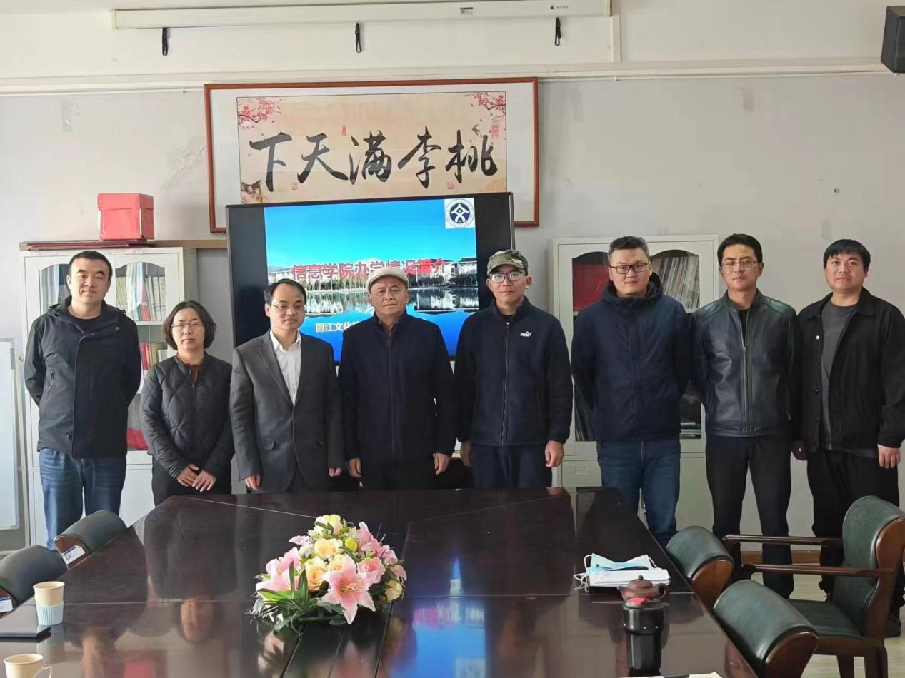 【bat365中文官方网站讯】为稳妥有效推进产教融合,提高bat365专业建设水平,在北京中关村软件园工程实践教育发展中心副主任于华柱的安排下,3月11—12日,bat365中文官方网站院长徐照兴、bat365中文官方网站书记王春梅一行2人赴丽江文化旅游学院信息学院考察交流。丽江文化旅游学院信息学院院长王震江、信息学院党总支书记王鑫、信息学院党总支副书记杨丽国、信息学院副院长王勇刚、院长助理兼计算机基础教研室主任梅红伟、数据科学与大数据教研室主任李睿、软件工程教研室主任吕迪、中关村软件园实训主讲老师侯志勇、侯舒怀等参加交流会。