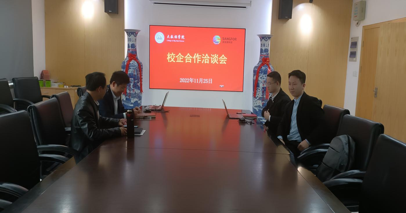 【bat365中文官方网站 讯】为了进一步推进bat365中文官方网站校企合作,2022年11月25日下午14:00,在学院会议室召开了bat365中文官方网站与深信服科技有限公司的校企合作洽谈会,参加会议的人员有徐照兴院长、赵德福副院长、深信服科技公司负责人,会议由徐照兴院长主持。