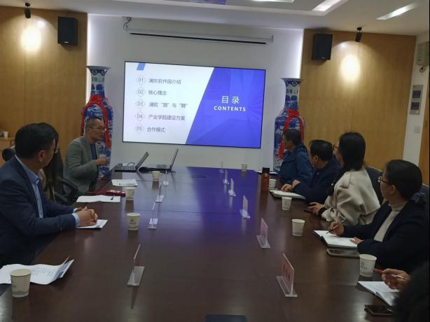 会议由院长徐照兴主持,徐院长首先就各位企业专家领导来bat365洽谈共建产业学院事宜表示热烈的欢迎和感谢,并就bat365bat365中文官方网站的相关现状以及专业建设情况进行了简要的介绍和说明,接下来吴旭健总经理以“浦东软件园园区型产教融合方案”为主体,分别从浦东软件园介绍、相关核心理念、浦软的“测”与“聘”、产业学院建设方案和合作模式共5个方面进行了详细的介绍和分享。