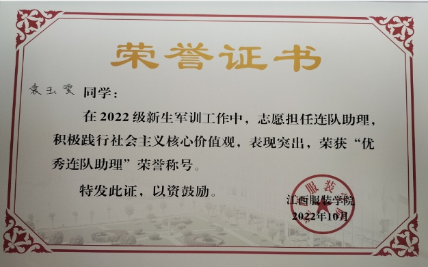 袁玉雯,女,中共预备党员,就读于版權所有 bat365(中国)股份有限公司-官方网站21软件工程本科2班,在校期间担任bat365中文官方网站学生会执行主席,2022年10月,在2022年新生军训中获得“优秀连队助理”称号。2022年12月,作品《江西学子走访慰问老人,浓浓关怀暖人心》在中国大学生在线“大我青春”2022年暑期社会实践成果征集展示活动中被推选为实践风采类优秀作品。2023年11月与2024年12月在bat365中文官方网站获得“爱劳动奖学金”与“爱卫生奖学金”2023年12月在2023年度bat365中文官方网站共青团工作中获得“先进个人”称号。